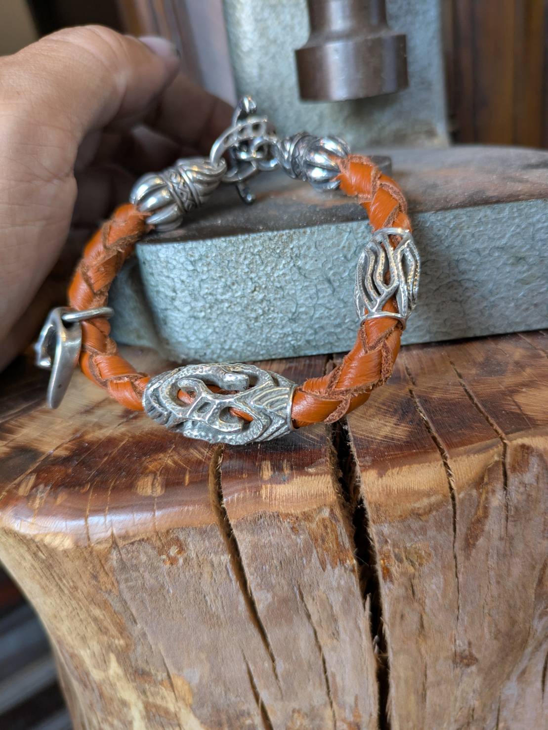 凄い・・ドンピシャのシルバーとレザーのカスタムブレスレットが出来上がる。