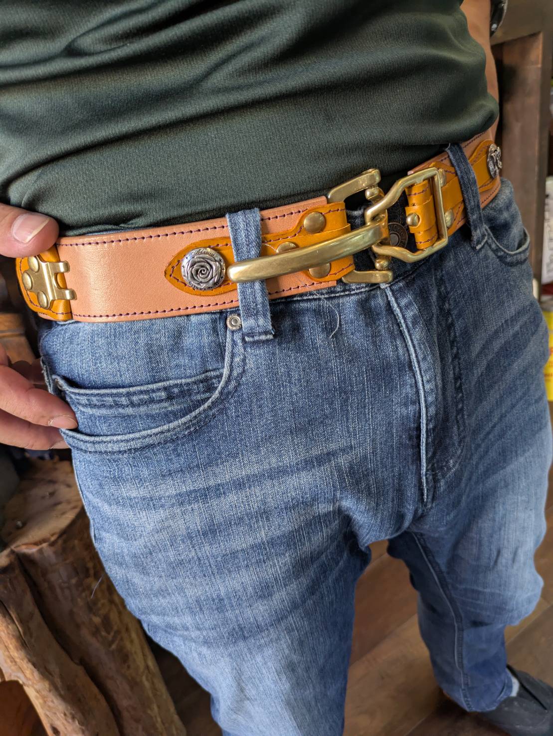 軸の根元にコンチョを添えて個性全開のキャバリエベルトに(^^)/