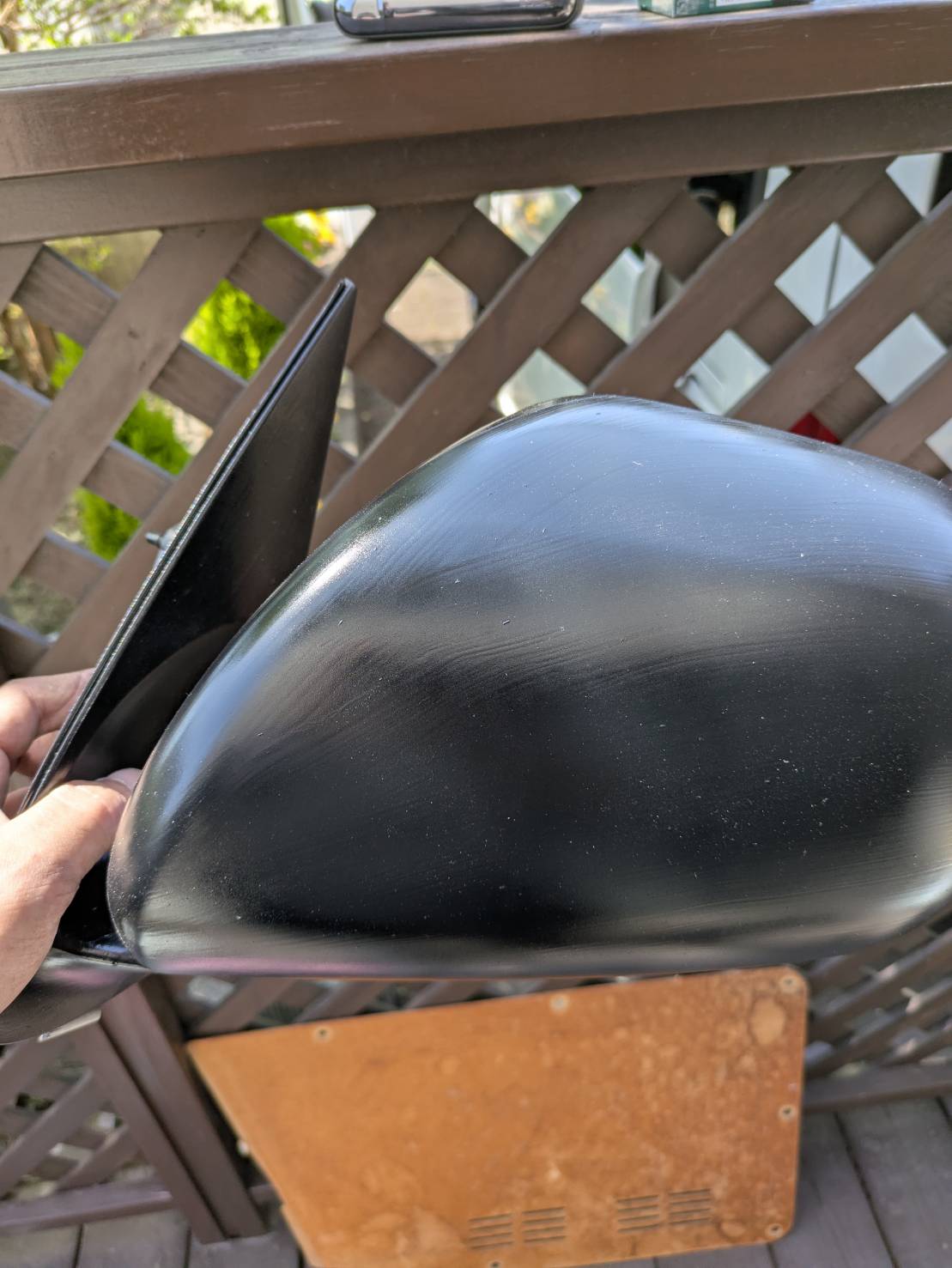 このサイドミラーを黒に塗りなおす=反対側の黒とは若干異なる黒になってしまうので・・・・