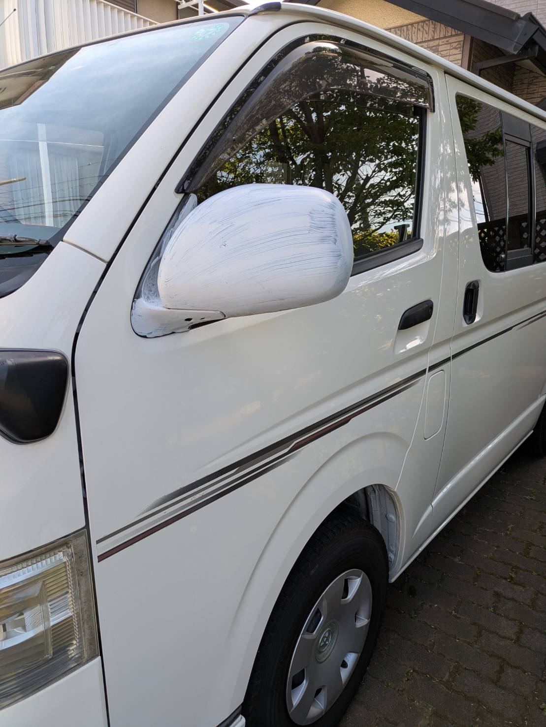 (世界の車窓から)ならぬ自宅の家窓から。ハイエースのサイドミラー塗り替え番外編(第2657回)