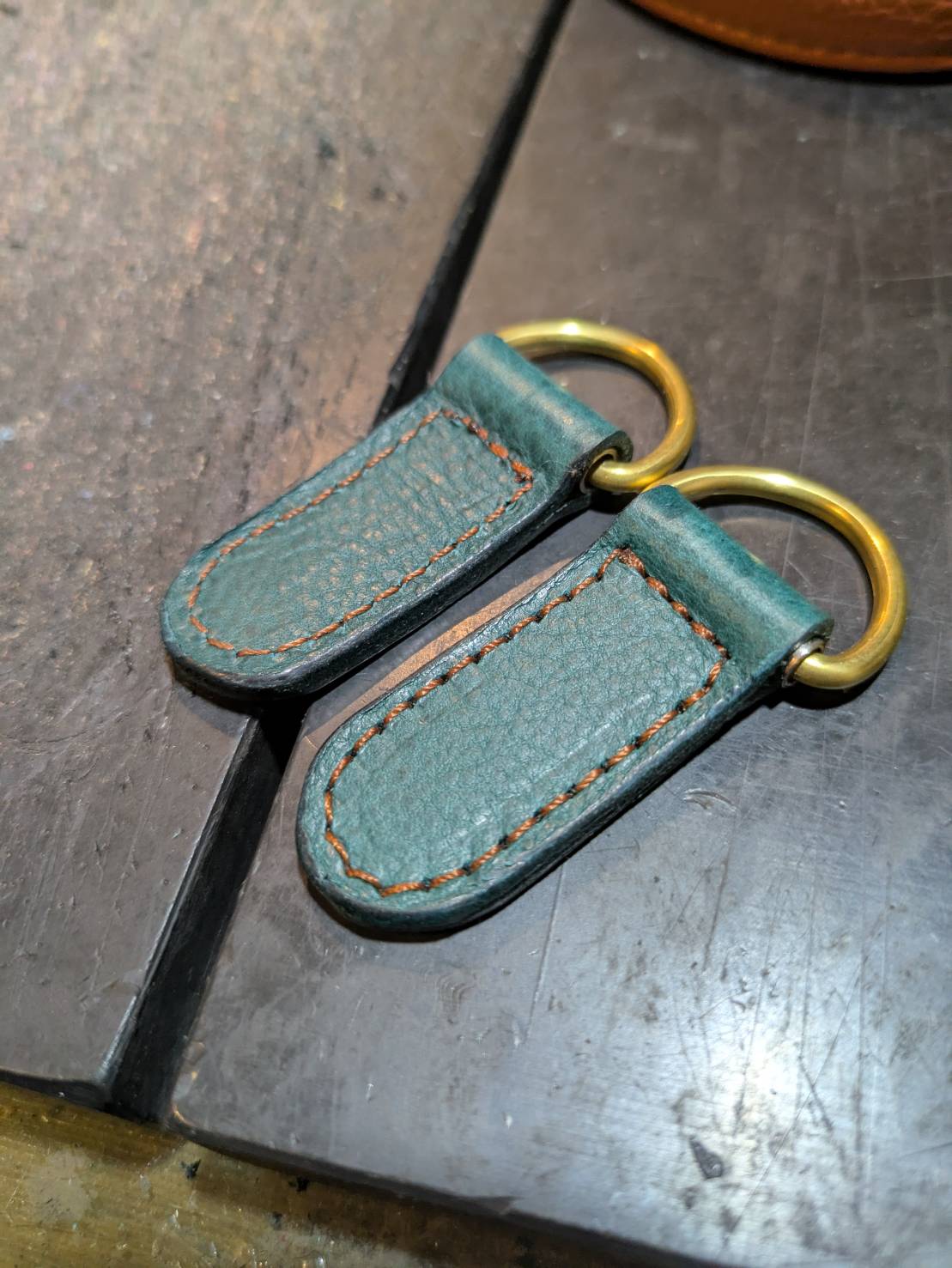 こんな感じの形状に裁断をして真鍮Dカンを挟み込みまして~・・・・
