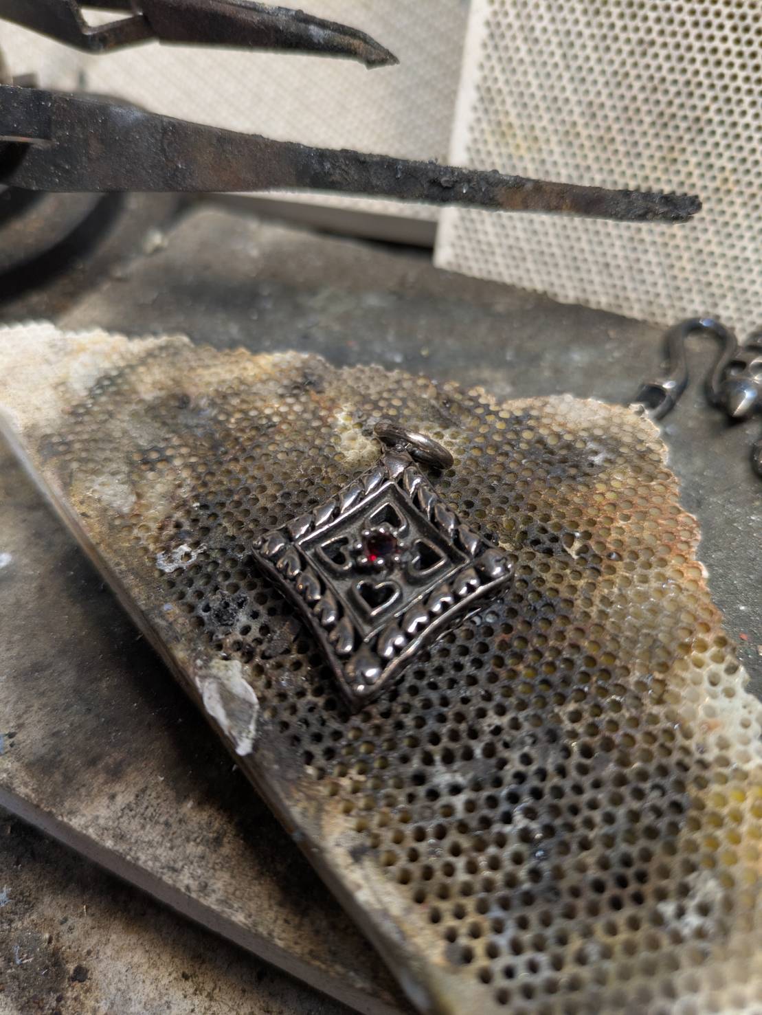 このペンダントトップを組み込みます!まさかの剣先にこのスクエアTOP!