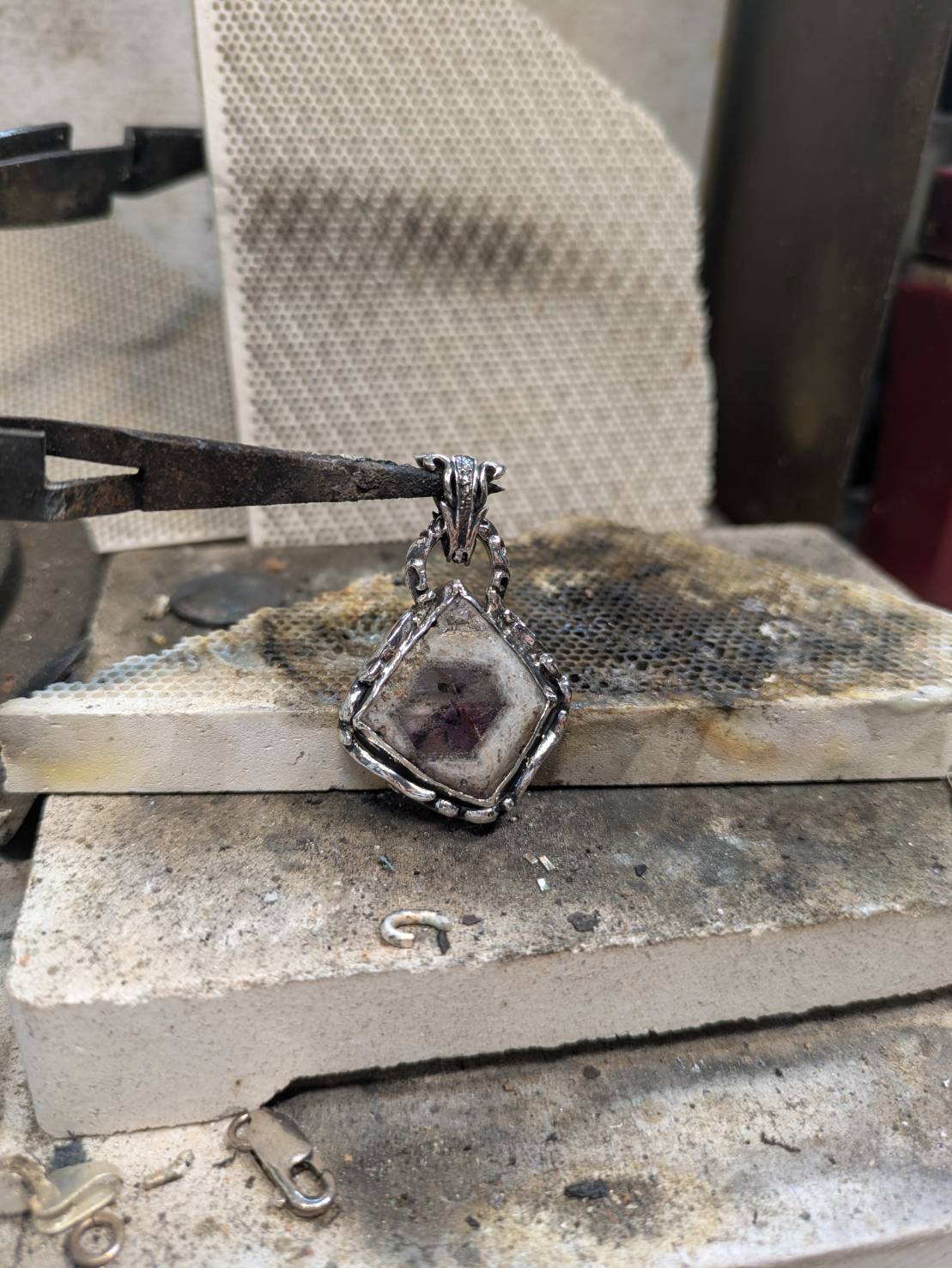 歪なルースに対応した不思議なペンダントの土台が仕上がります☆