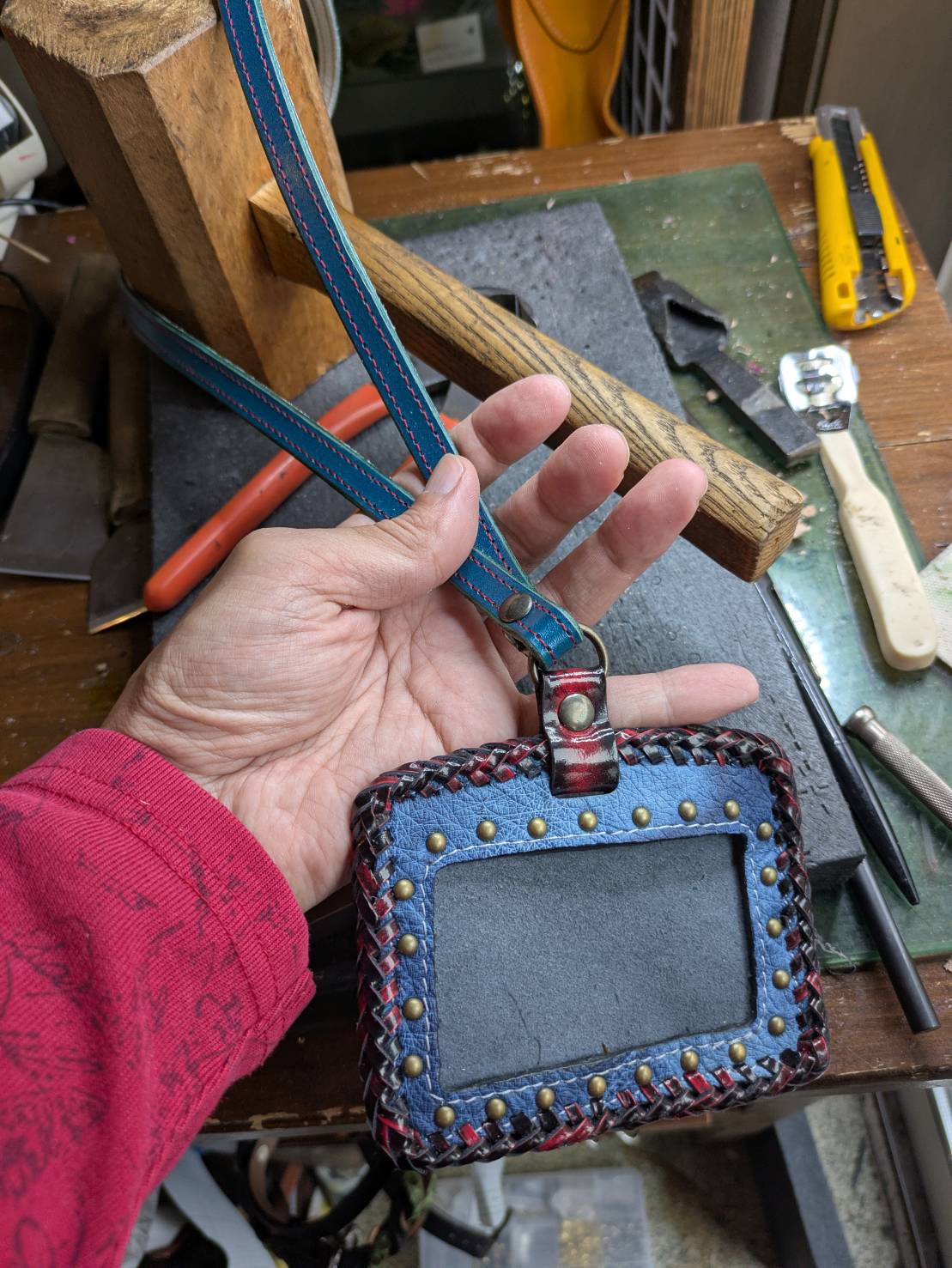 若干残っているこの激レア皮革を使用して今回茨城の奥様が保険業のネームホルダーが欲しいとの事で製作させていただきました!