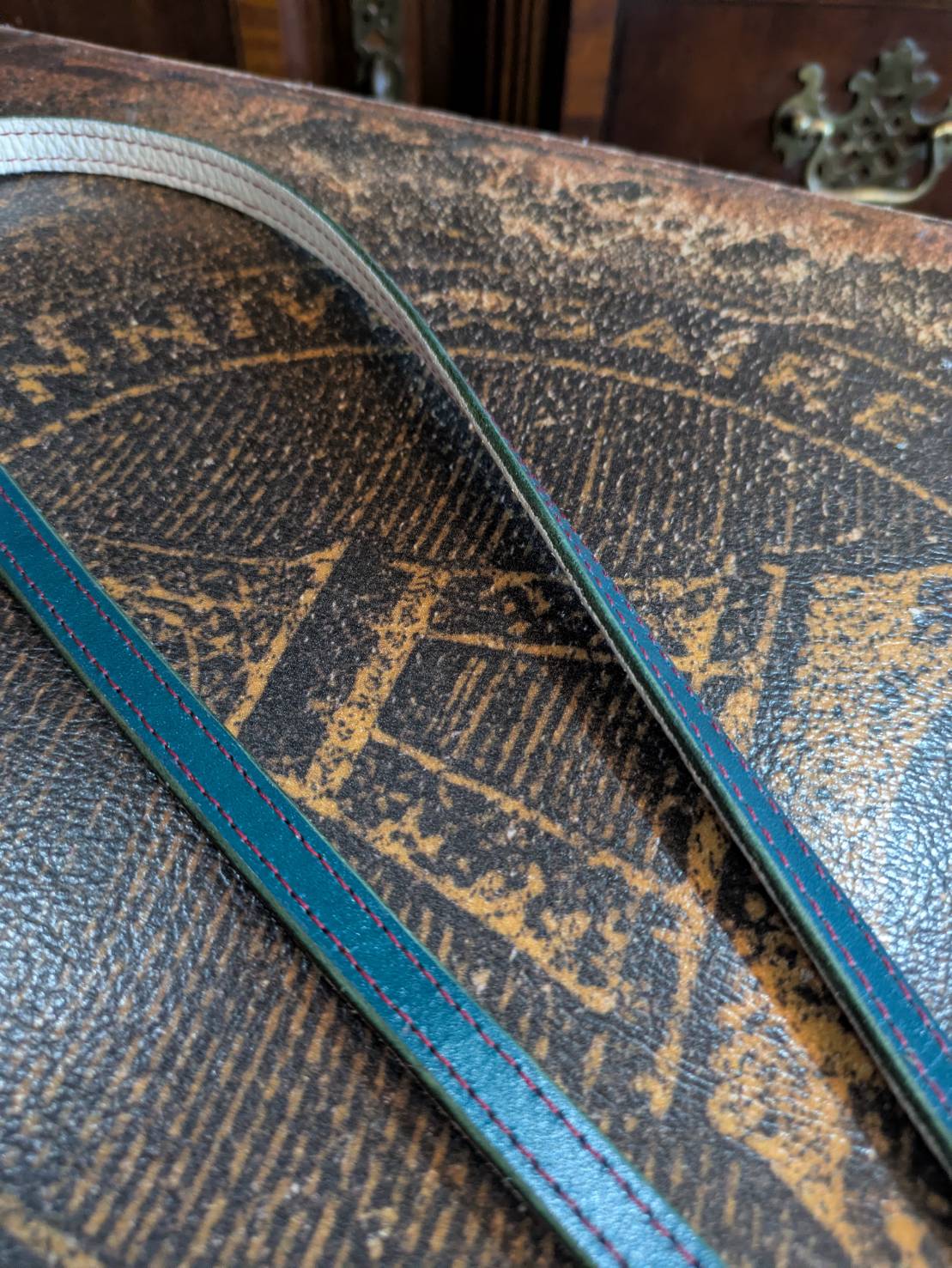 勢い全開の首掛けストラップはルガトの琉球ブルーとシュリンクホワイト!そしてステッチは赤!!
