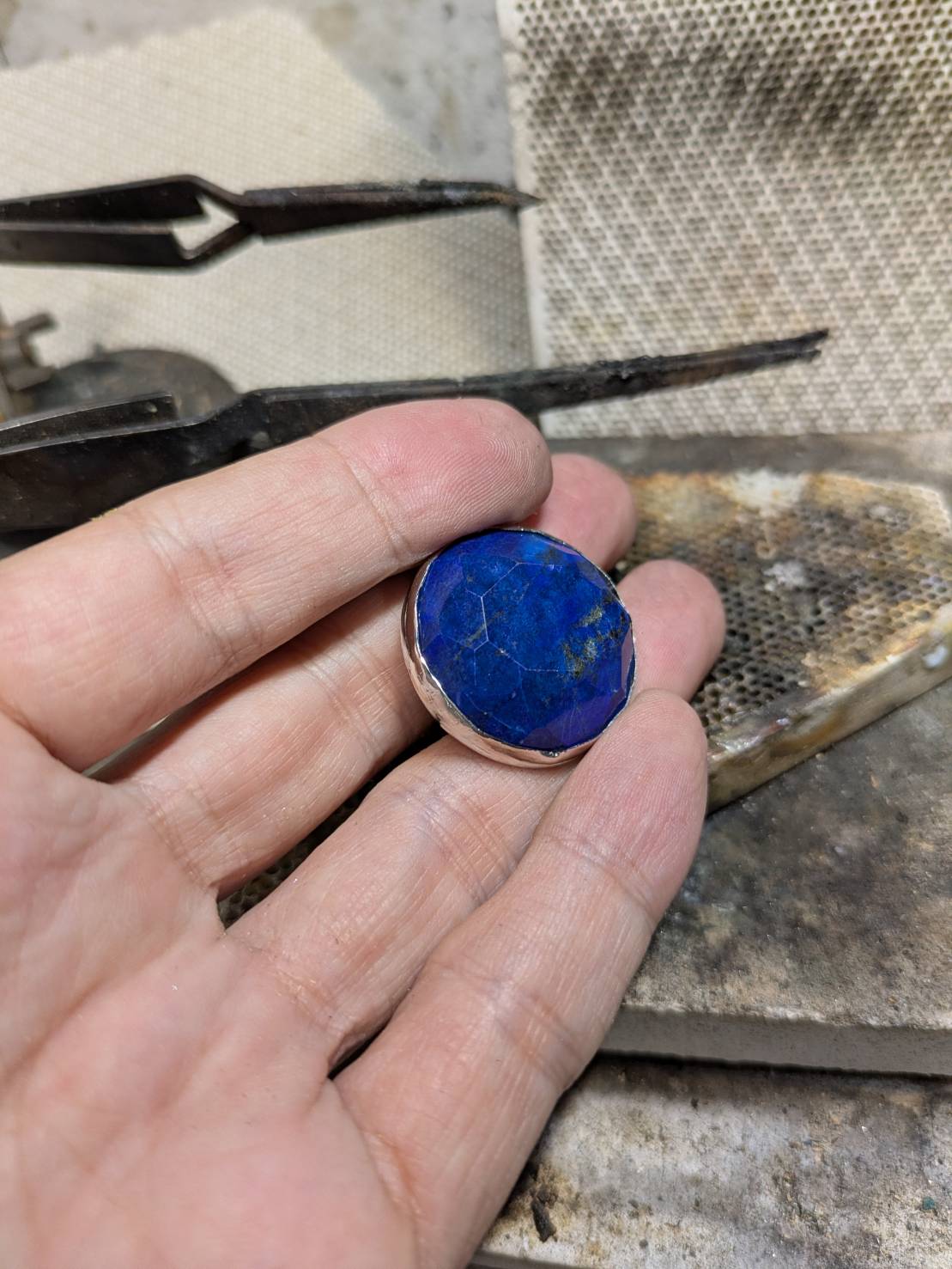 「O用」にラピスラズリをバー留め仕様でカスタム製作を試みていく。