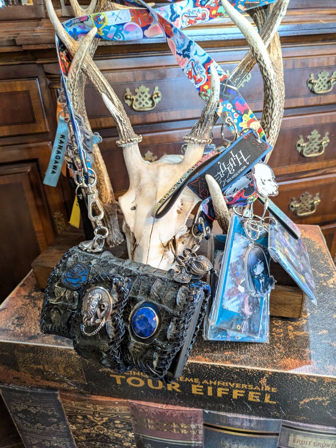 Adoのベルト?にハトメを打ちまくってあげまして、過去のLiveのストラップを次々と付けていました。