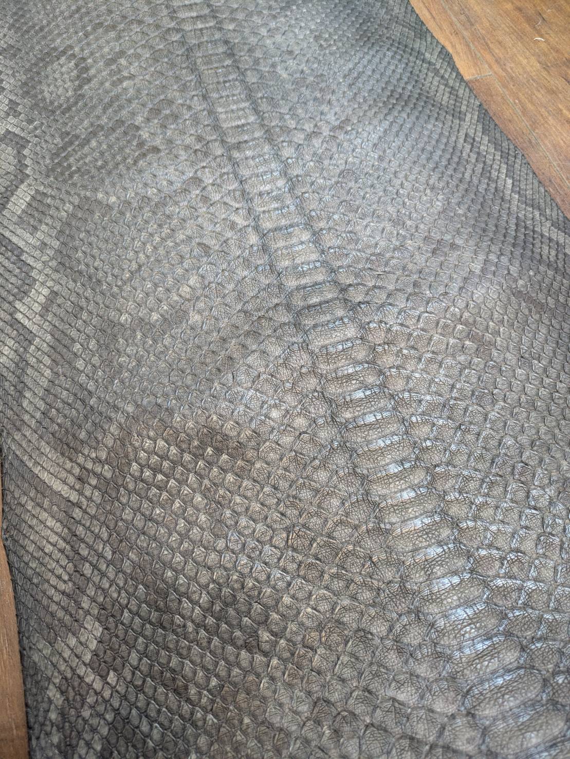 クロコダイルと同じくらい拘って続けているのがこのビルマニシキヘビの墨染め皮革。
