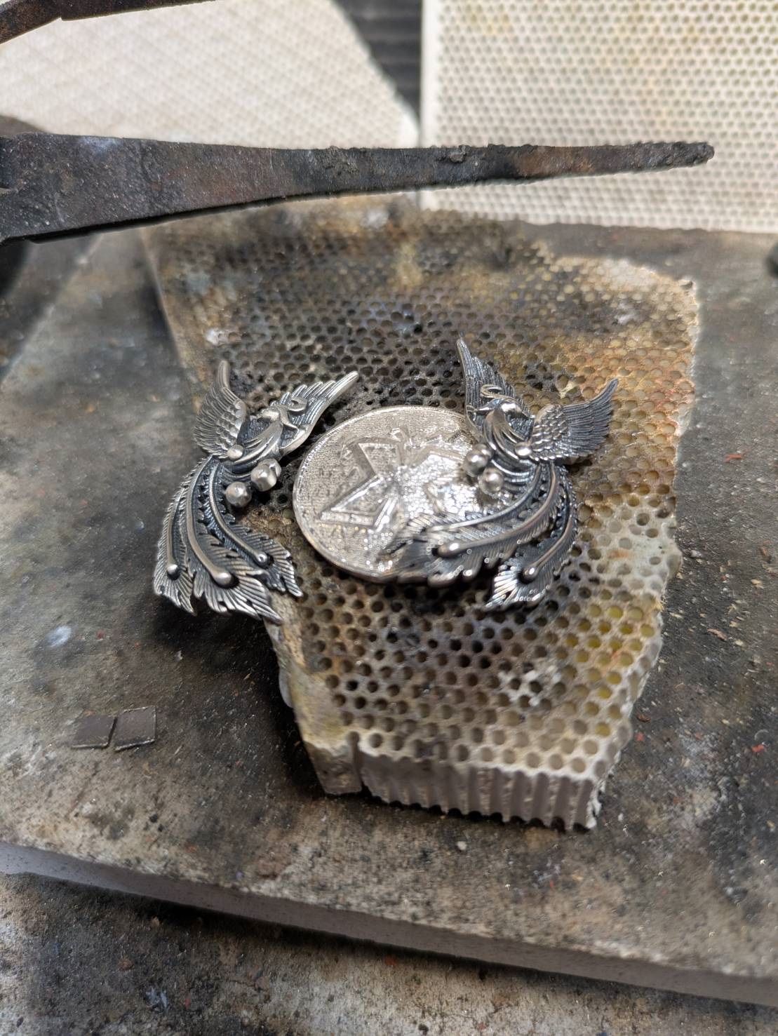 普通にこのモチーフで販売されていたら欲しくなるようなモチーフのコンチョに出来上がっています♪