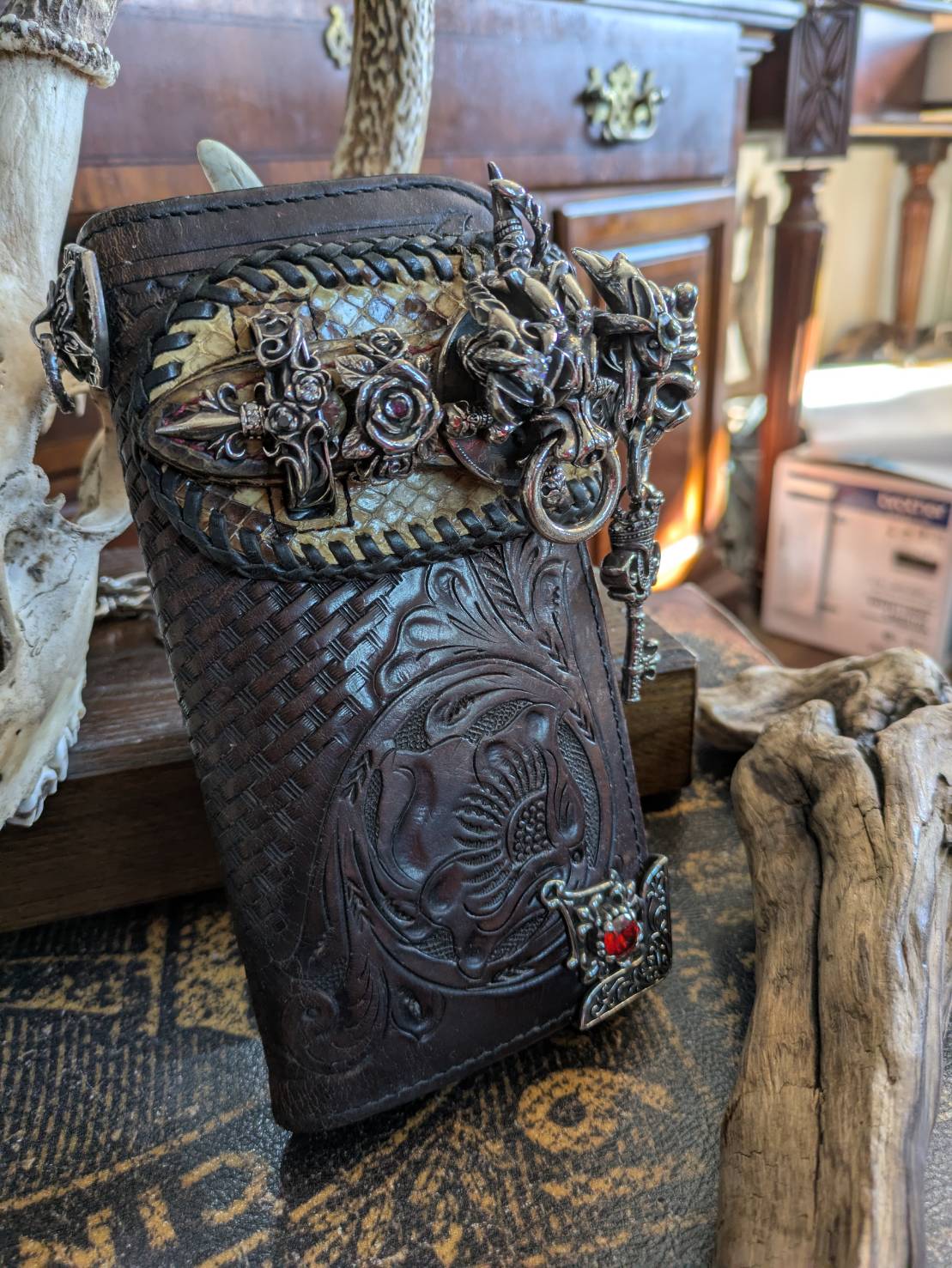 そりゃそうですよね!だってメインコンチョなんてドラゴンスカルがいてハットをかぶったウサギがいてのサソリに逆十字にしたスカルのペンダントで組み上げた物ですよ・・ぶっちゃけ意味わからないじゃないですか!爆笑
