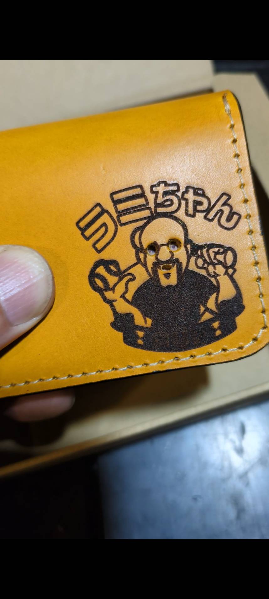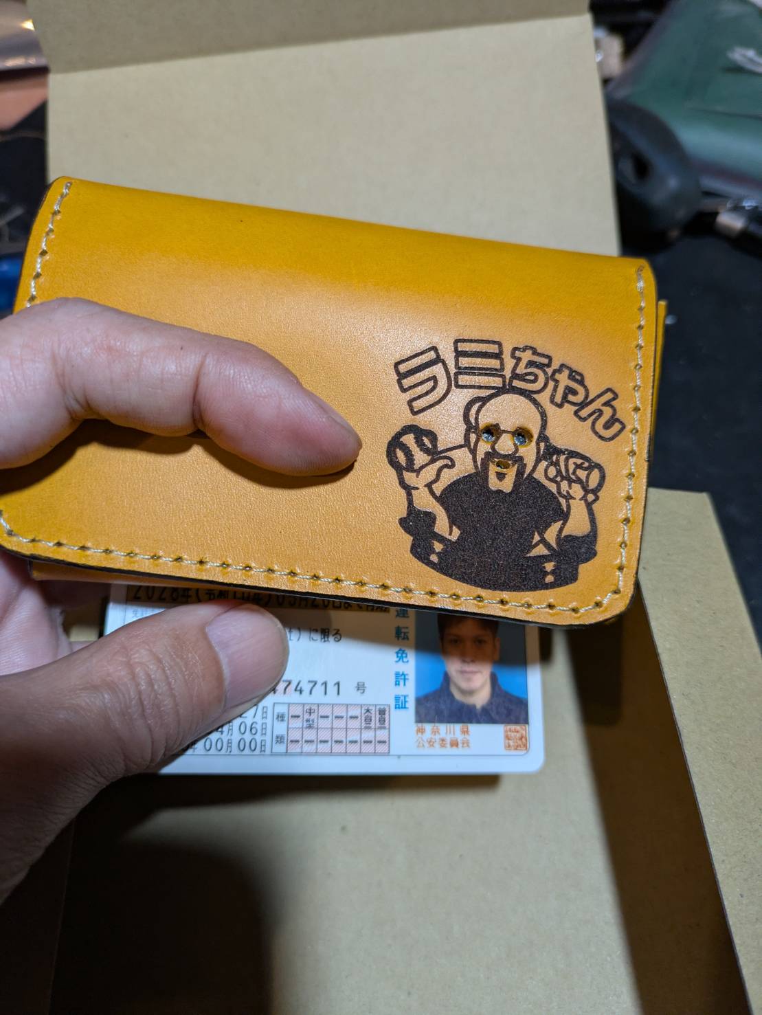 そう、依頼内容としては「年始のゴルフのコンペの景品でラミレスのレーザー彫刻が入った名刺入れをお願いしたい」というものでした。笑