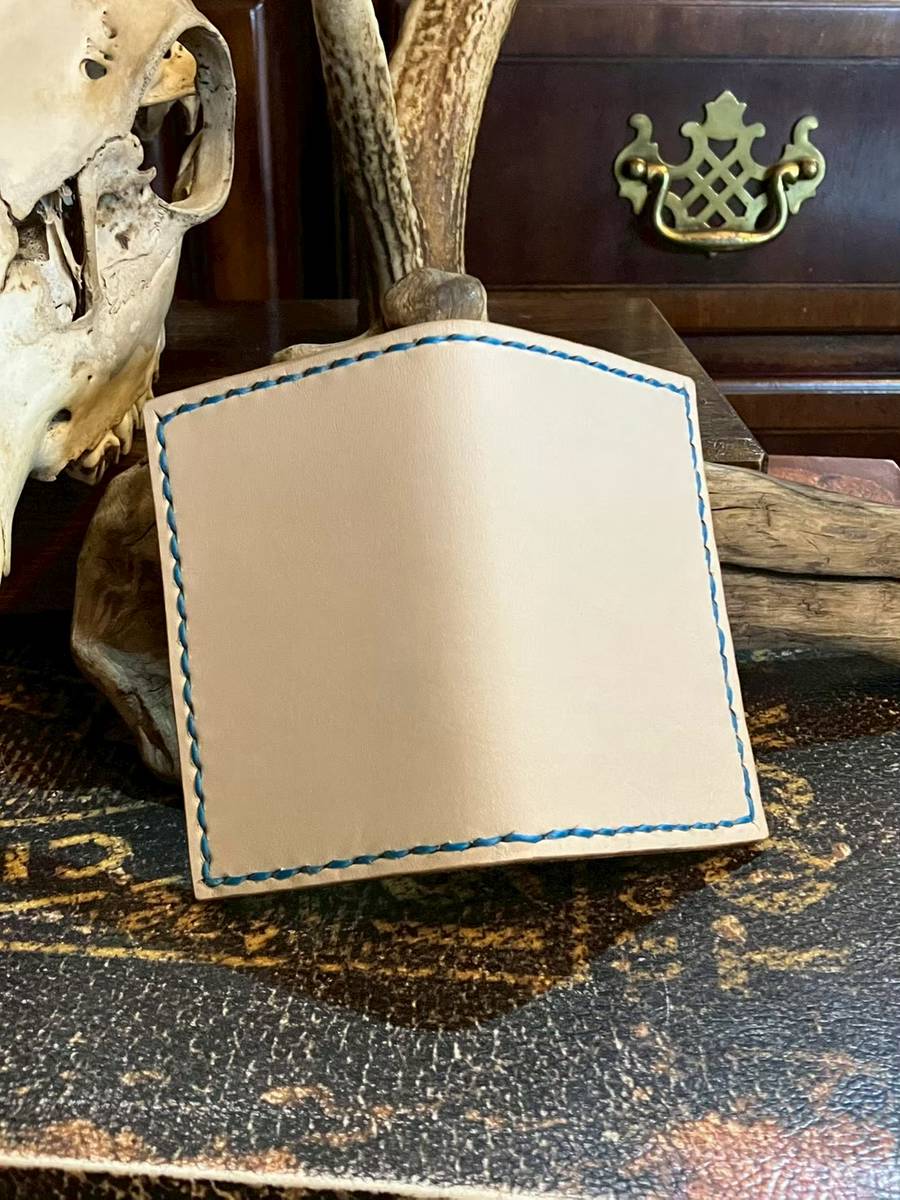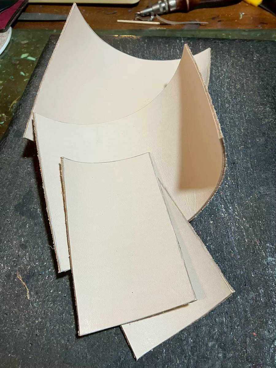 まずはヌメ革のナチュラルを裁断して、裏地を磨いた後に~…