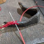 ショルダーベルトはシュリンクブラックで組みまして、本来ならバッグの本体にしてもおかしくない皮革はヒモとして使われましたww