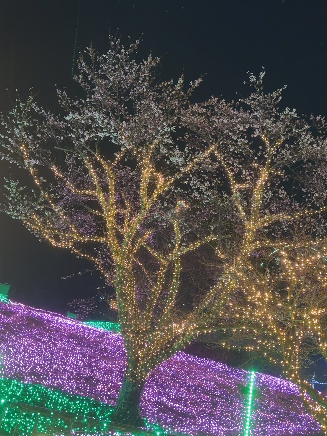 桜に向かってライトが当たってるのが見たかったのですが、桜の木に電飾が巻いてある(@_@;)