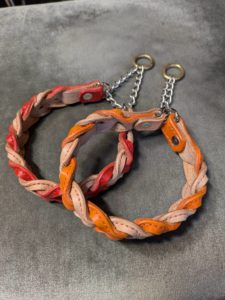 編み目の部分は20mm幅のベンズ革を二本使い、編んでいきます。