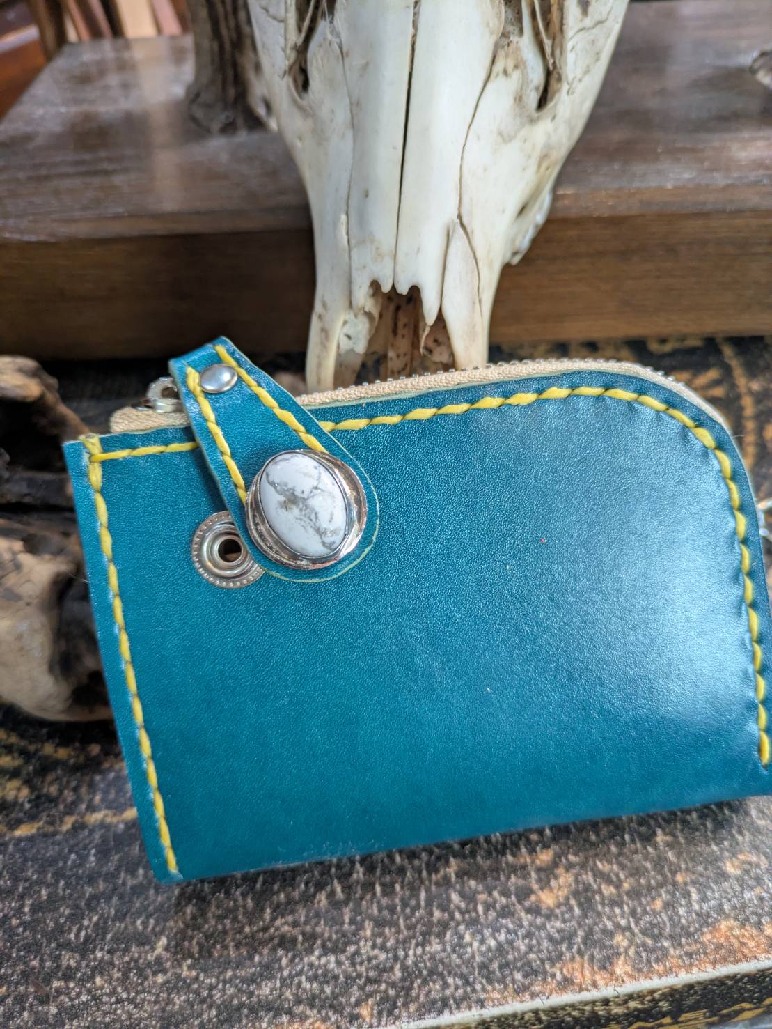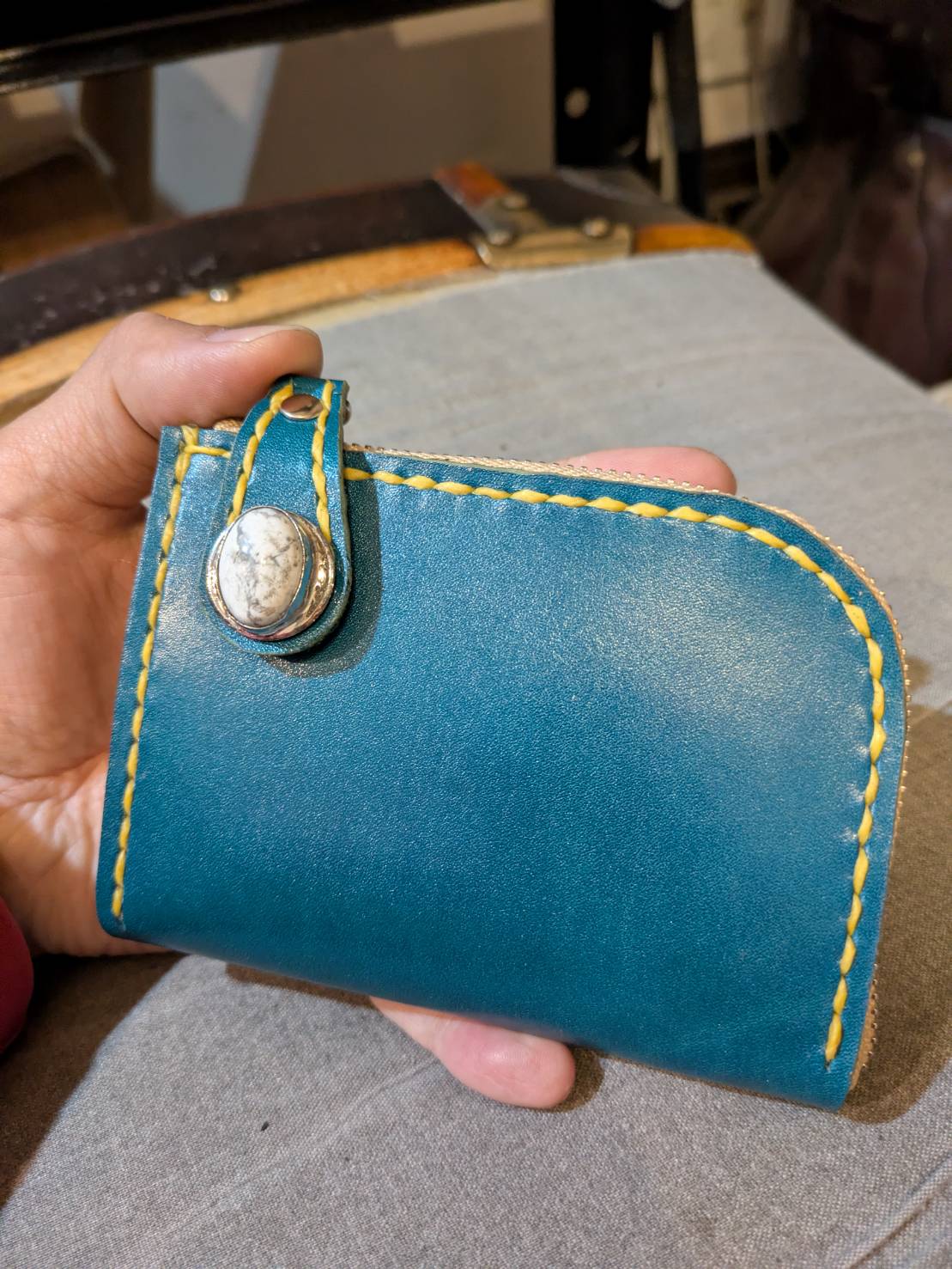 琉球ブルーのカスタムL字ファスナー財布(第2880回)