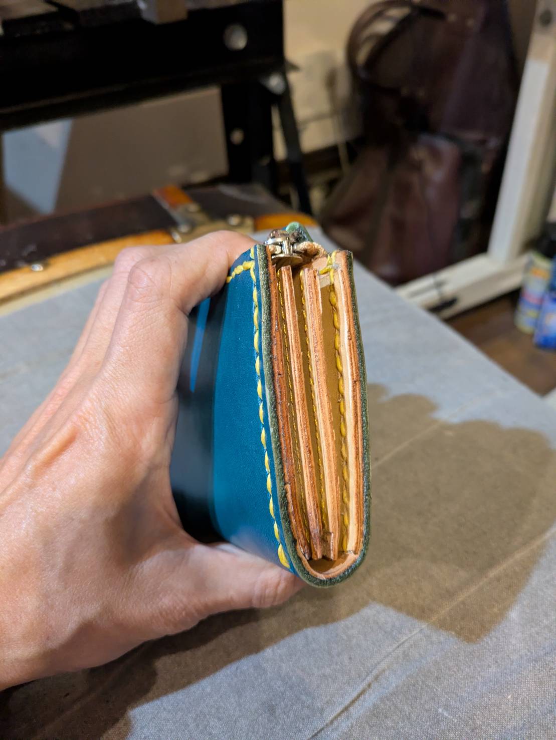 しっかしこのお財布ってミシン縫いよりも遥かに手縫いが難しいww