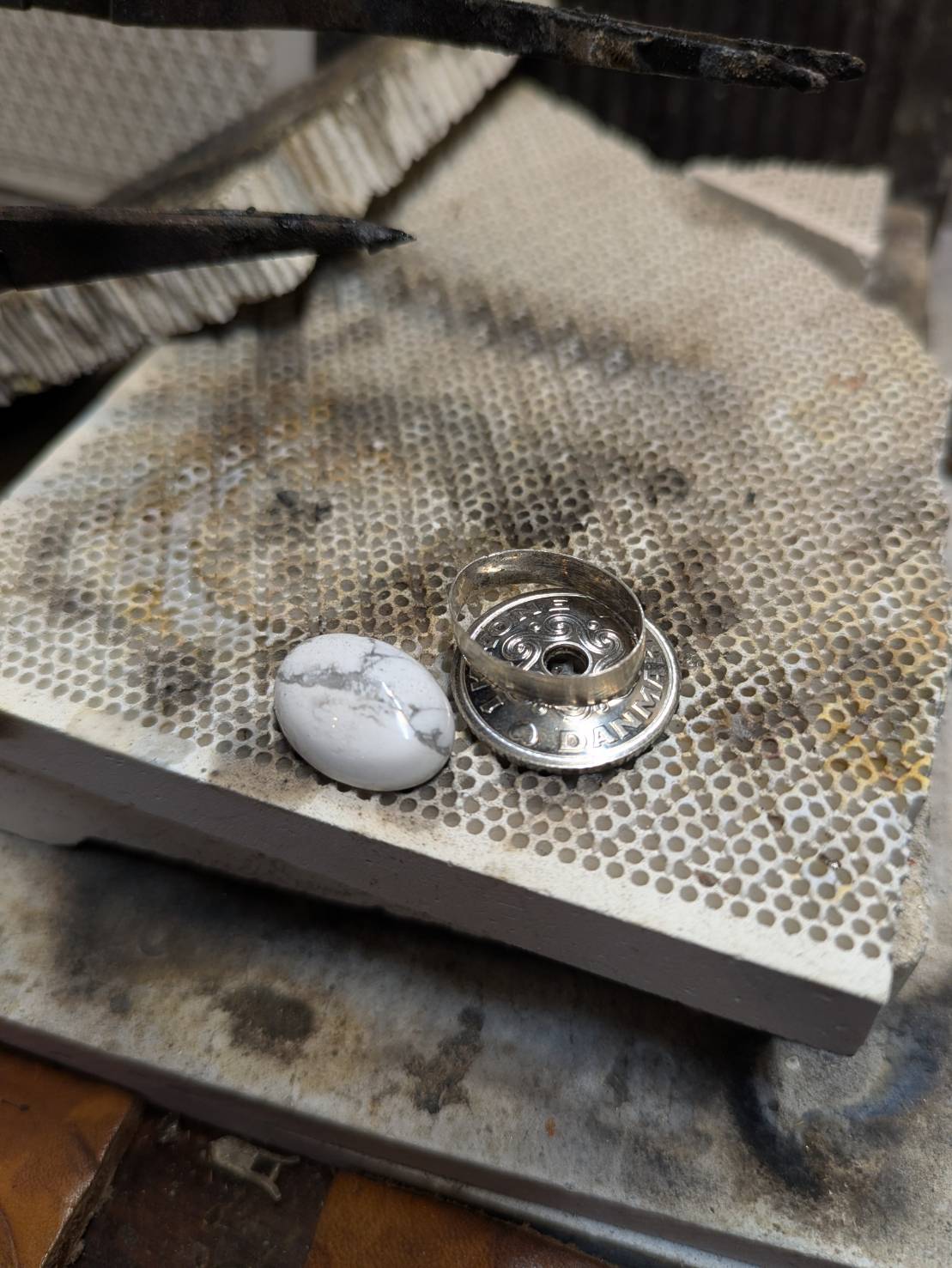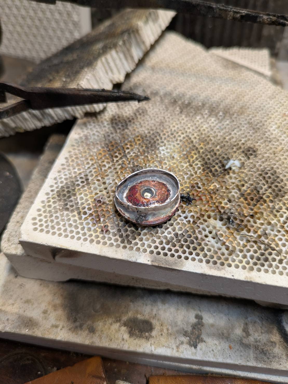 湾曲に合わせて印台枠をロウ付けします。