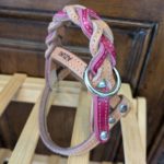 全長をみてポメラニアンの首輪だったらしく決して長くはない・・・。希望は四つにキーホルダー化出来るか?との事でしたが見栄え的に、そして元々金具が付いていた跡的に3つが限界と判断。普通はブレスストラップキーホルダーにする等1~2個で組むのが良いところなんでしょうけど、頑張れば三ついける気がしたんですよ。